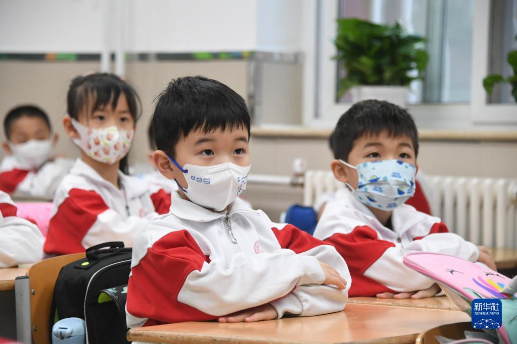 2月13日,在人大附中實驗小學,一年級(7)班的學生上開學第一課。