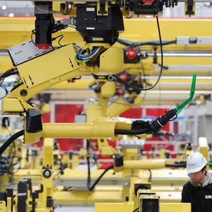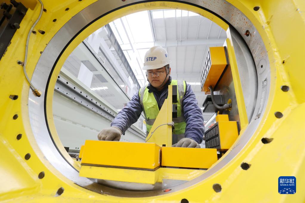 2月12日,德清縣雷甸鎮一家高空作業機械生產企業“未來工廠”車間,工人在調試智能化生產線。