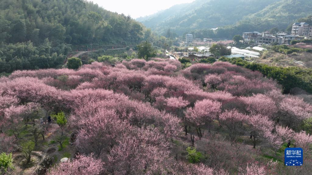 近日,福建省福州市閩侯縣荊溪鎮關中村古響自然村一百多畝梅花如期盛開,如同彩霞彌漫山間,吸引眾多游客前來游玩觀賞,給古樸的村落帶來勃勃生機。