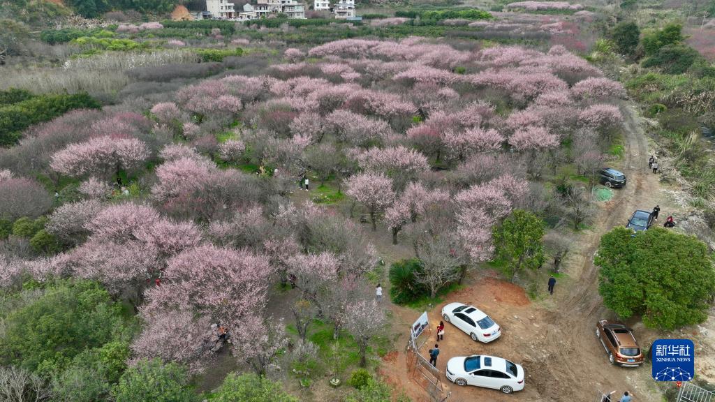 近日,福建省福州市閩侯縣荊溪鎮關中村古響自然村一百多畝梅花如期盛開,如同彩霞彌漫山間,吸引眾多游客前來游玩觀賞,給古樸的村落帶來勃勃生機。