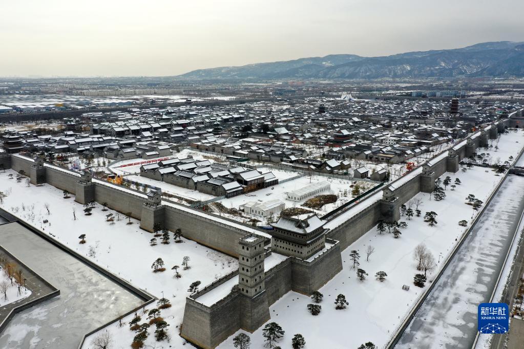 一場降雪過后,位于山西省太原市晉源區的太原古縣城銀裝素裹,美景如畫。