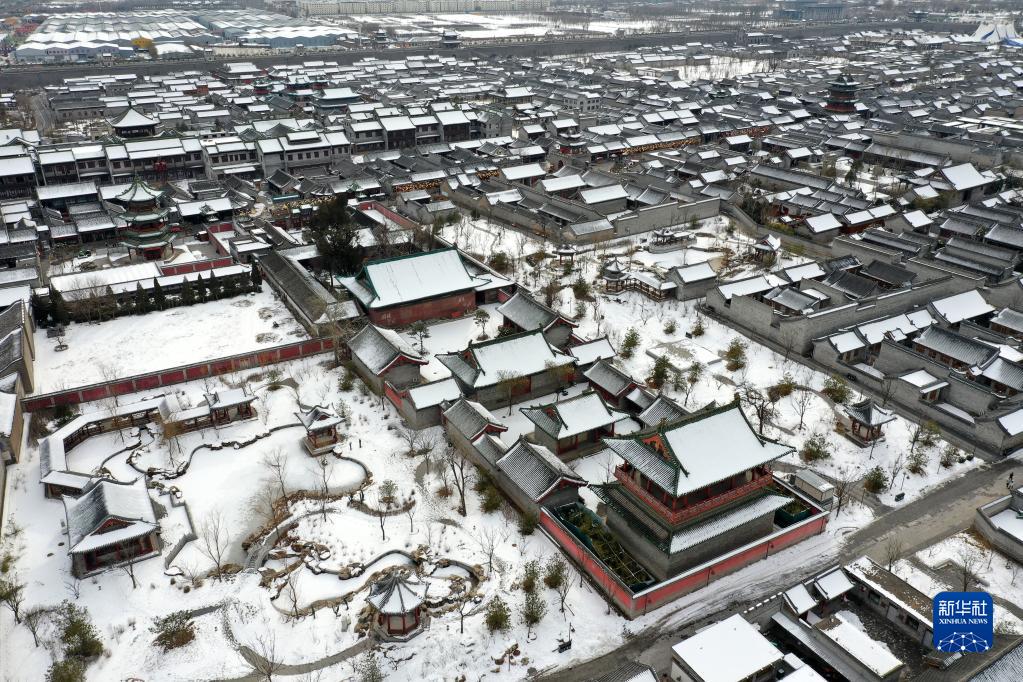 一場降雪過后,位于山西省太原市晉源區的太原古縣城銀裝素裹,美景如畫。