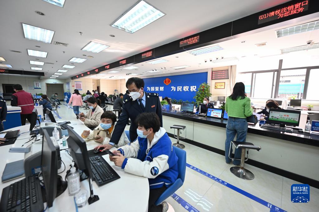 2月13日,在福州市閩清縣辦稅服務大廳,工作人員幫助企業工作人員辦理業務。