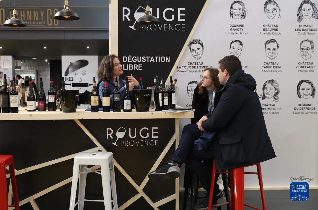 2月13日,展商在法國巴黎國際葡萄酒及烈酒博覽會上洽談業務。