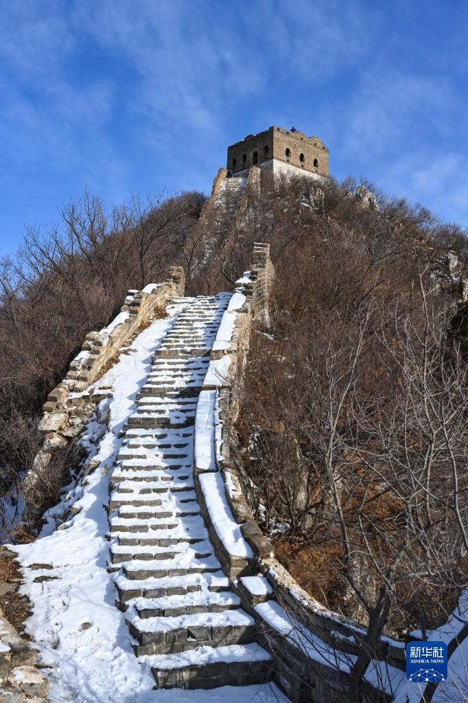 近日,北京懷柔迎來降雪。雪后的箭扣長城銀裝素裹,壯觀秀麗。