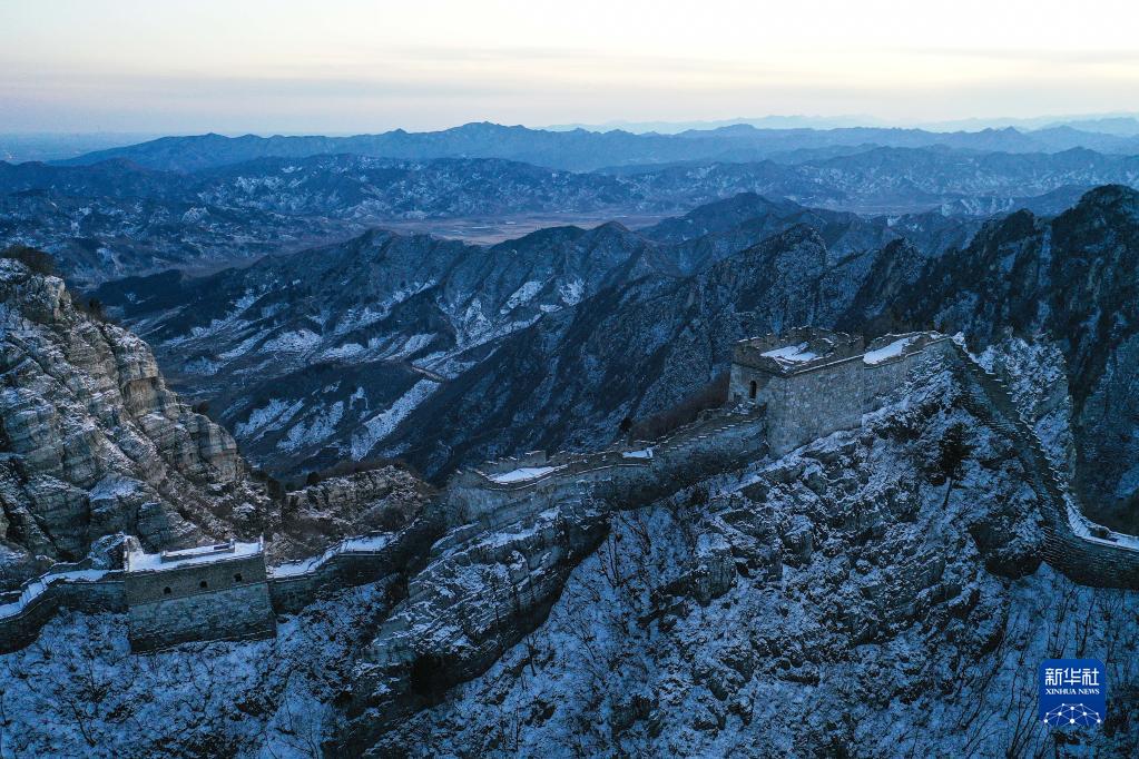 近日,北京懷柔迎來降雪。雪后的箭扣長城銀裝素裹,壯觀秀麗。