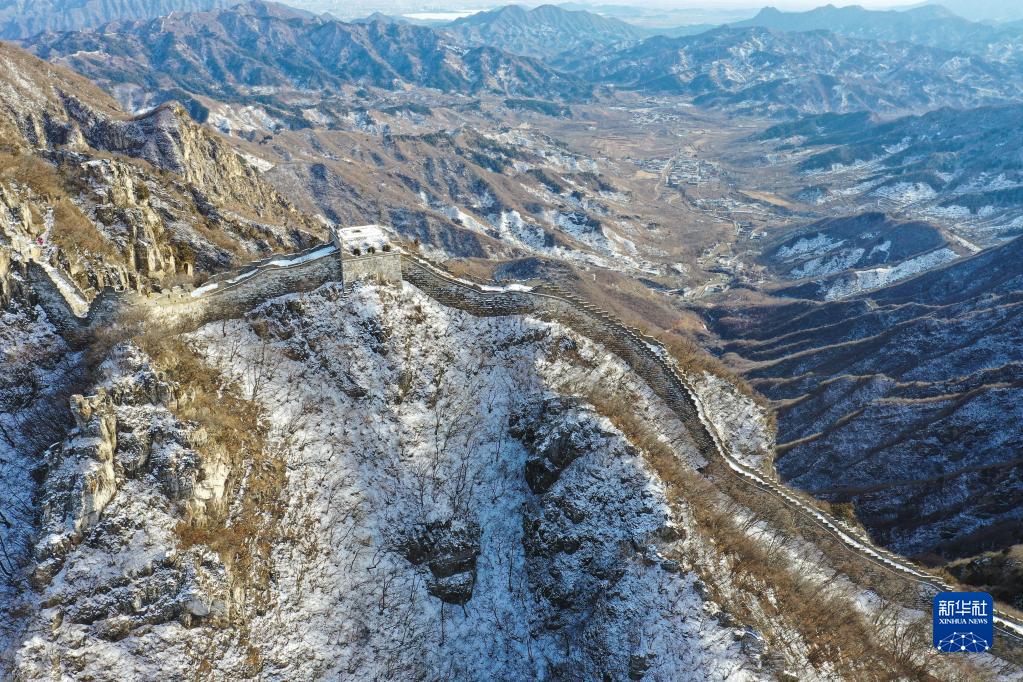 近日,北京懷柔迎來降雪。雪后的箭扣長城銀裝素裹,壯觀秀麗。