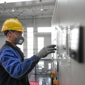 2月13日,工人在包頭江馨微電機科技有限公司生產車間內作業。