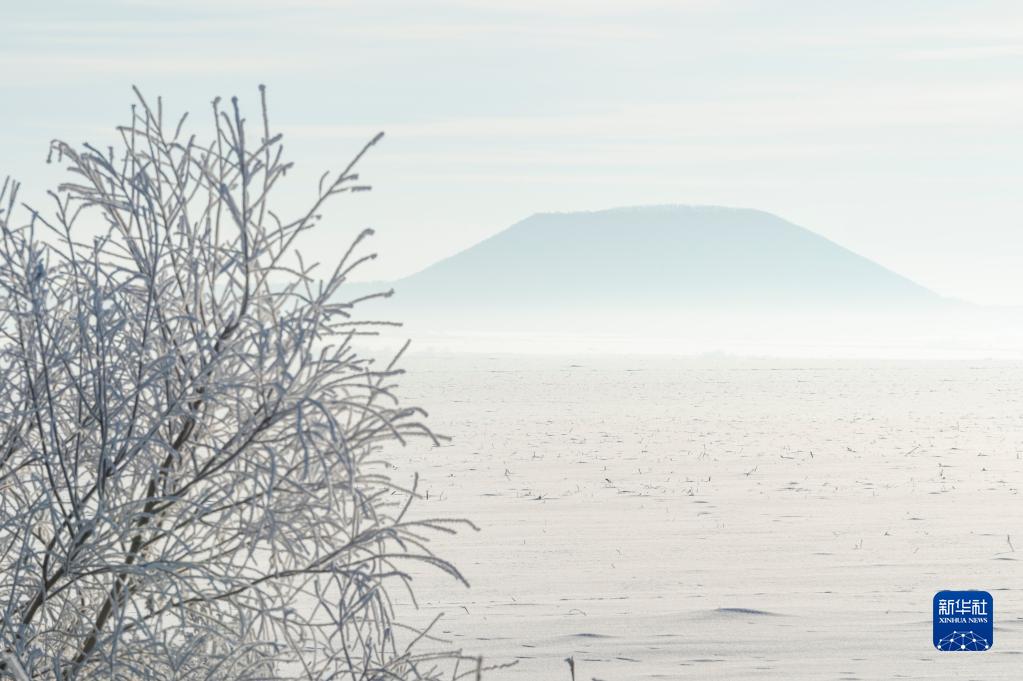 位于黑龍江省黑河市的五大連池風景區火山與霧凇景觀(2月13日攝)。