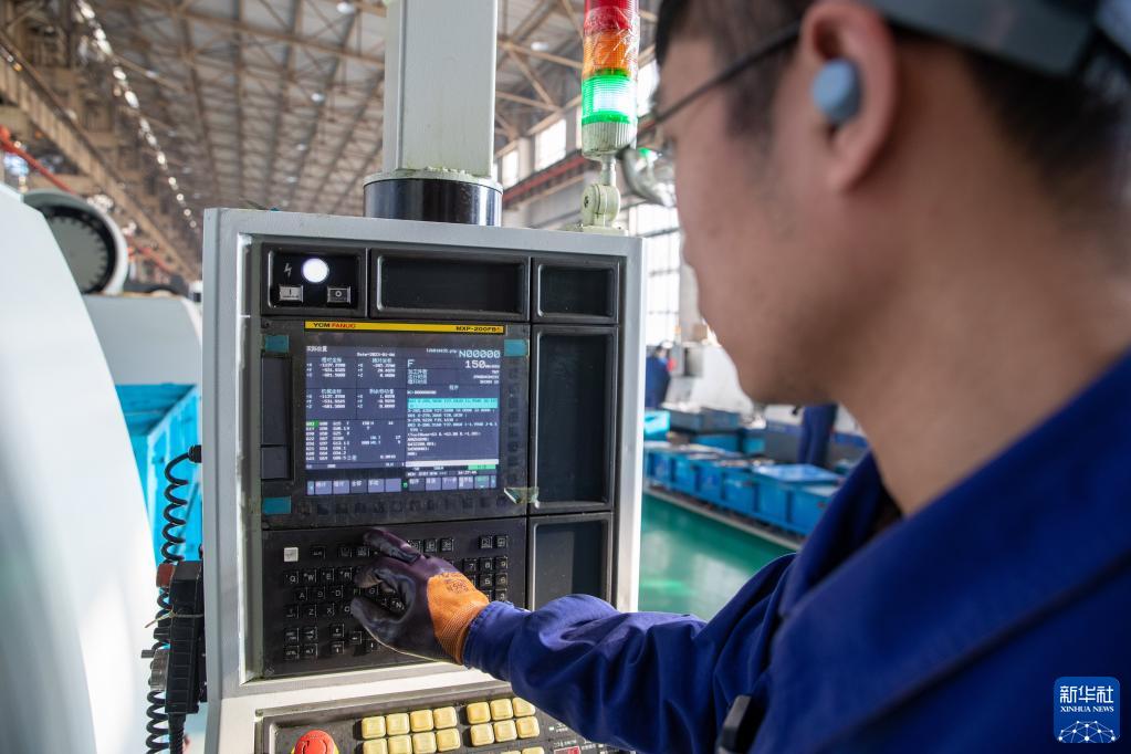 2月13日,工作人員在哈電集團哈爾濱電機廠有限責任公司數控加工中心車間內操控智能設備。新華社記者 張濤 攝