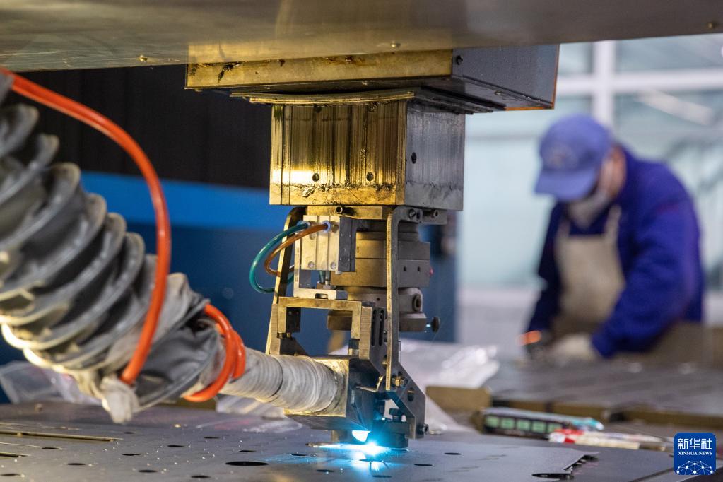 2月13日,在哈電集團哈爾濱電機廠有限責任公司生產車間,激光自動點焊機在作業中。新華社記者 張濤 攝