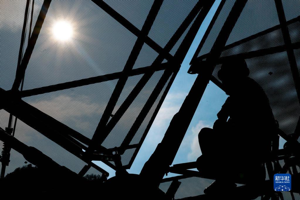 2月13日,工作人員對“中國天眼”的反射面板進行維護保養(維護保養期間拍攝)。