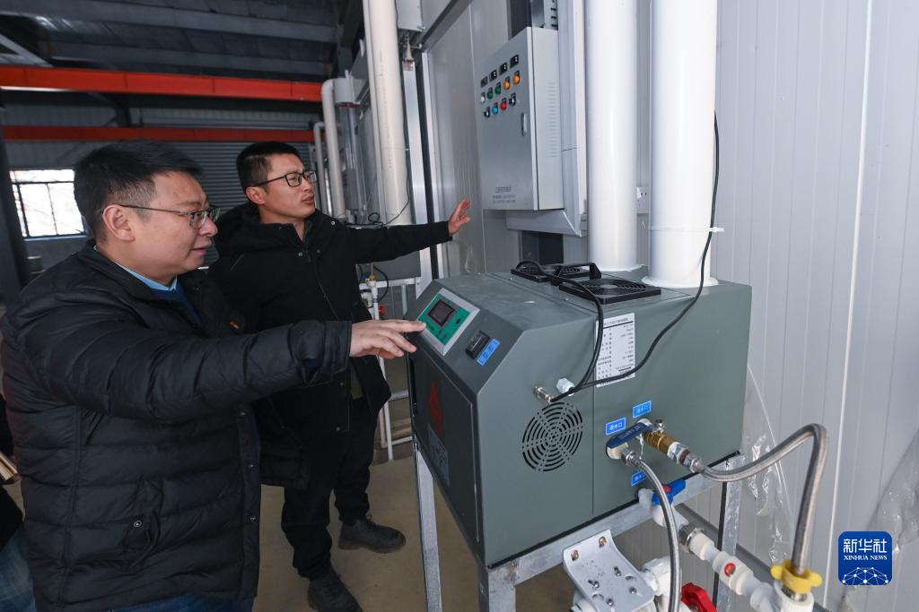 2月14日,返鄉創業青年包洪軍(右)就檢修升級育苗車間的設備問題向“田間課堂”小分隊農技專家俞俊進行咨詢。包洪軍大學畢業后回鄉承包了1000多畝農田,使用完善的機械作業、無人機植保等現代農業技術,打造現代化糧倉。