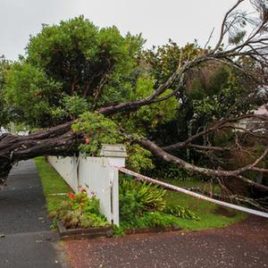 這是2月14日在新西蘭奧克蘭拍攝的受損樹木。