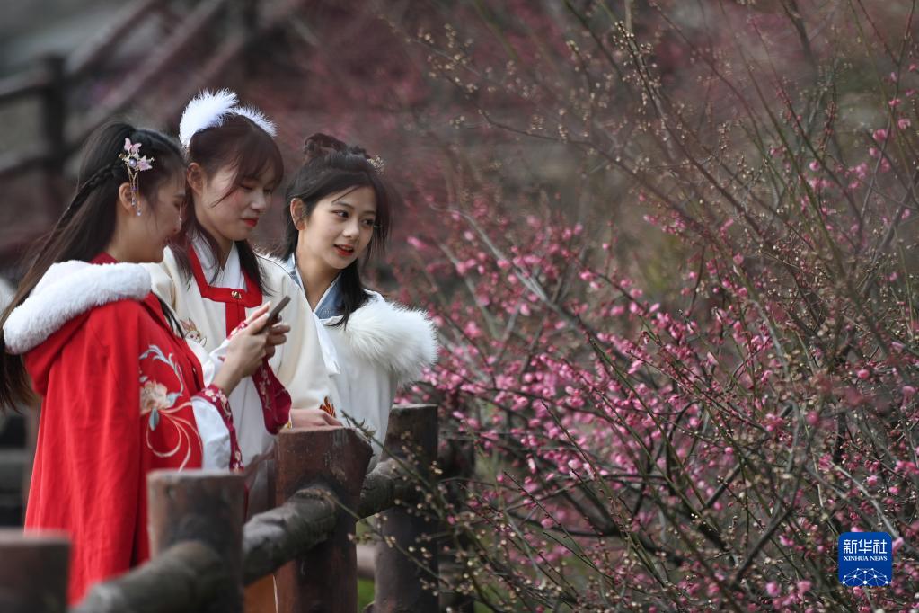 當日,西塞山第五屆梅花節在浙江省湖州市吳興西塞山旅游度假區原鄉小鎮景區開幕,盛開的梅花吸引不少游客前來觀賞。