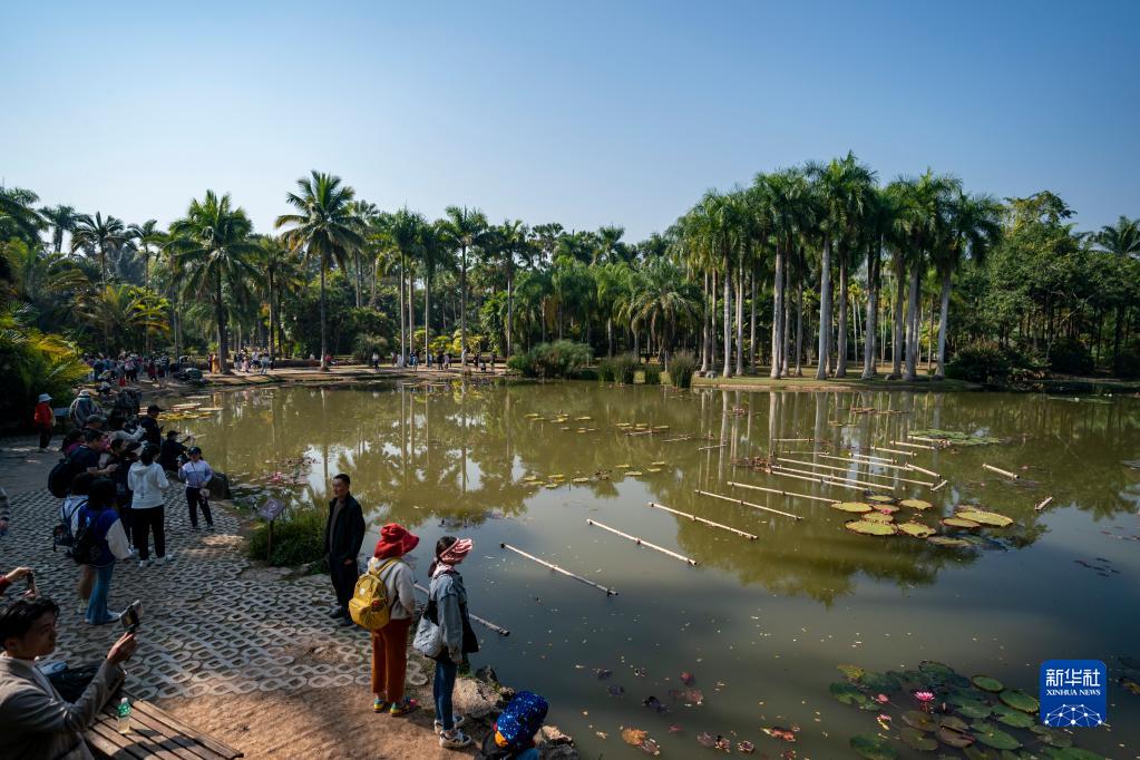 2月12日,游客在位于西雙版納州勐臘縣勐侖鎮的中國科學院西雙版納熱帶植物園內游覽。