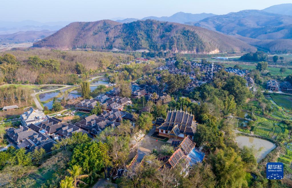 這是2月12日拍攝的西雙版納州勐??h打洛鎮勐景來景區一景(無人機照片)。