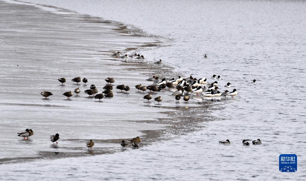各種鳥類在北京園博湖棲息(2月14日攝)。