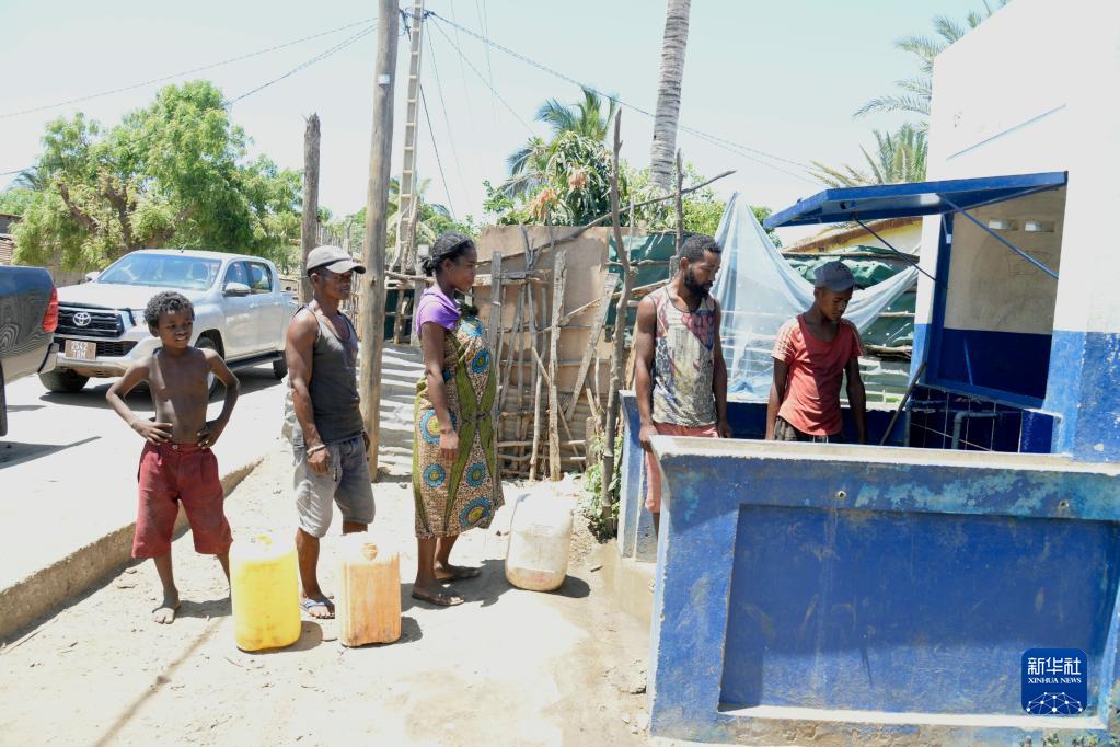 2022年12月8日,在馬達加斯加西南部沿海城市圖利亞拉,當地人在集中供水房前排隊打水。新華社記者 凌馨 攝