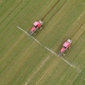 2月14日,在安徽省蚌埠市五河縣頭鋪鎮,農民駕駛農機給小麥噴灑農藥(無人機照片)。