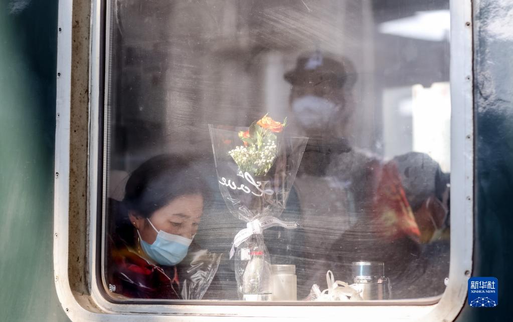 2月15日,旅客在湖北武昌站乘坐列車出行。