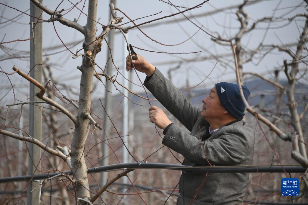 2月15日,果農在北京市峪口鎮西營村“未來果園”剪枝。