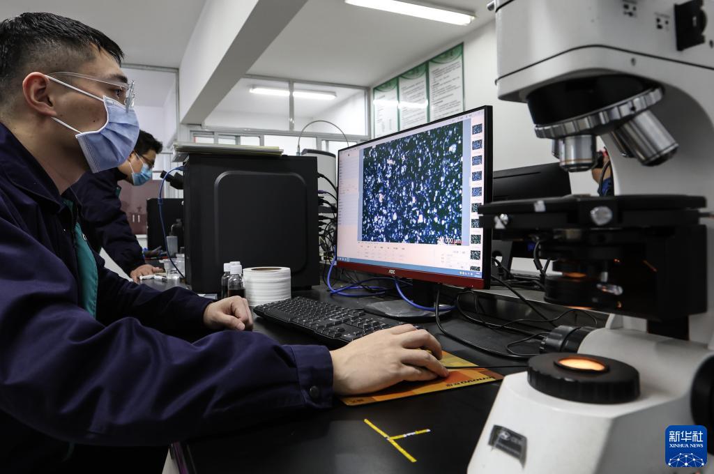 常州第六元素材料科技股份有限公司的技術人員檢測石墨烯原料(2月14日攝)。