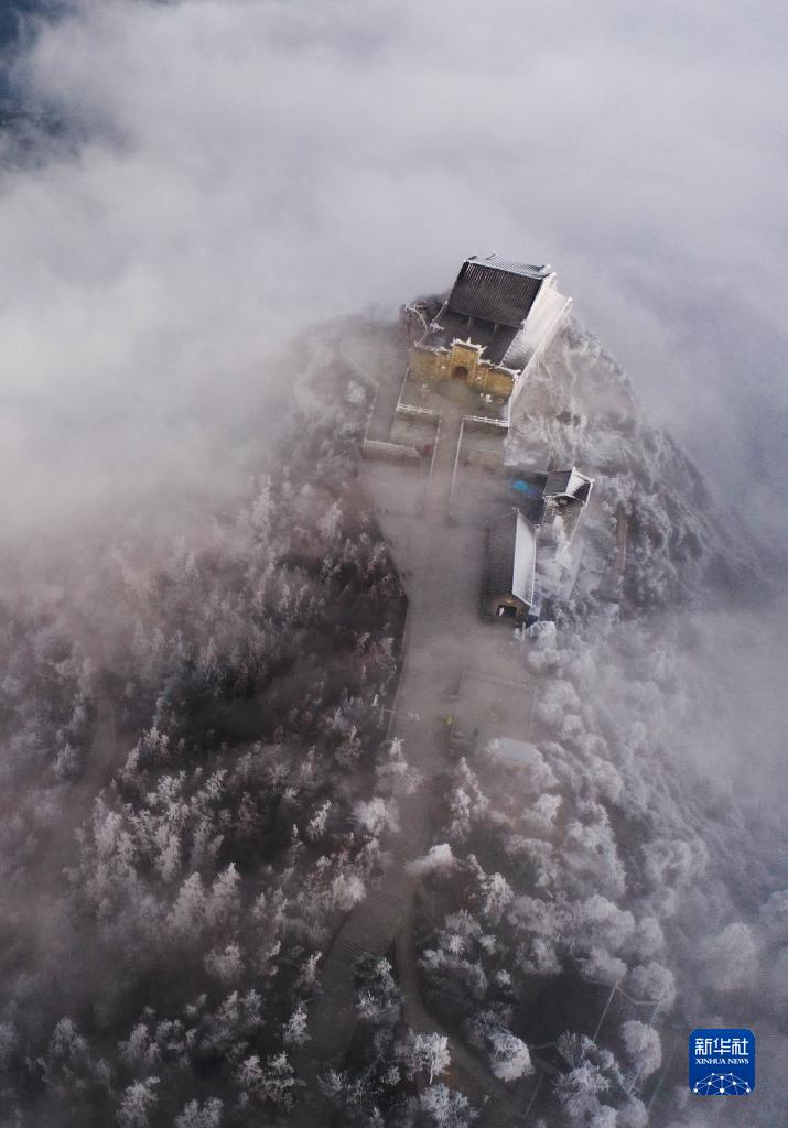 當日,湖南省衡陽市南岳衡山風景區雪后初霽,晶瑩剔透的霧凇在云海里若隱若現,景色如畫。