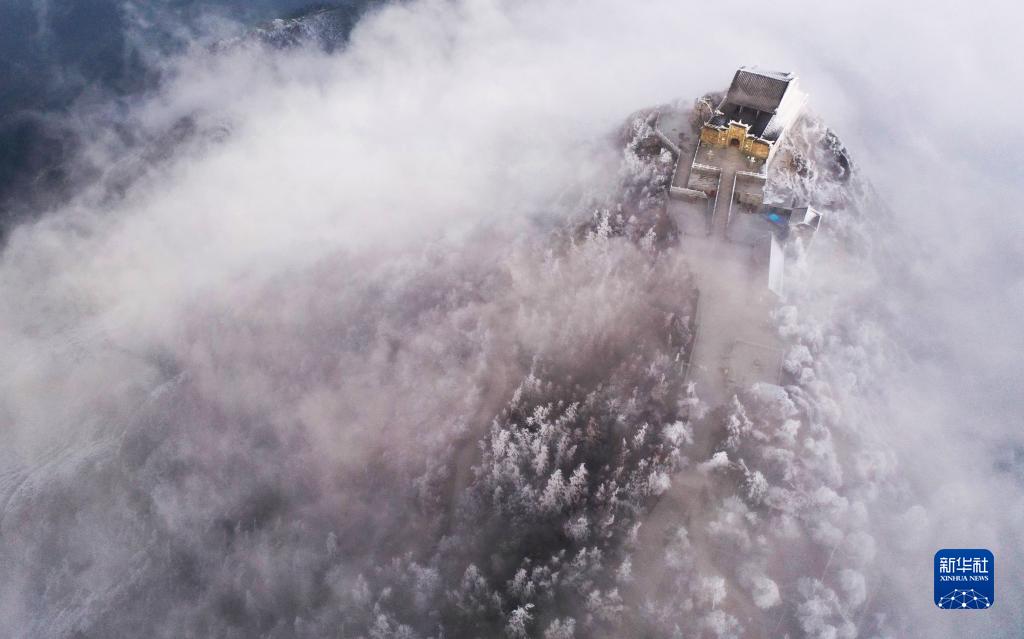 當日,湖南省衡陽市南岳衡山風景區雪后初霽,晶瑩剔透的霧凇在云海里若隱若現,景色如畫。