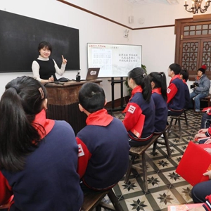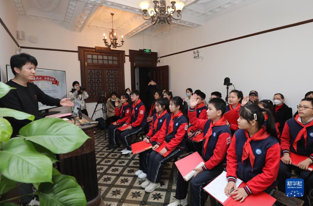 2月15日,《中文自修》雜志方濟力老師在中國左翼作家聯盟成立大會會址紀念館課堂上與同學們互動交流。