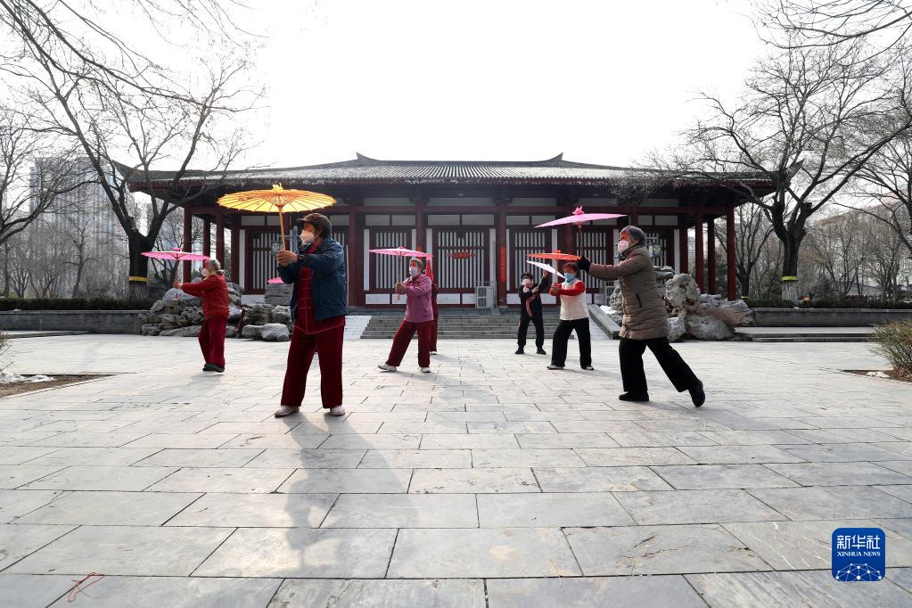 2月15日,市民在石家莊趙佗公園休閑游玩。