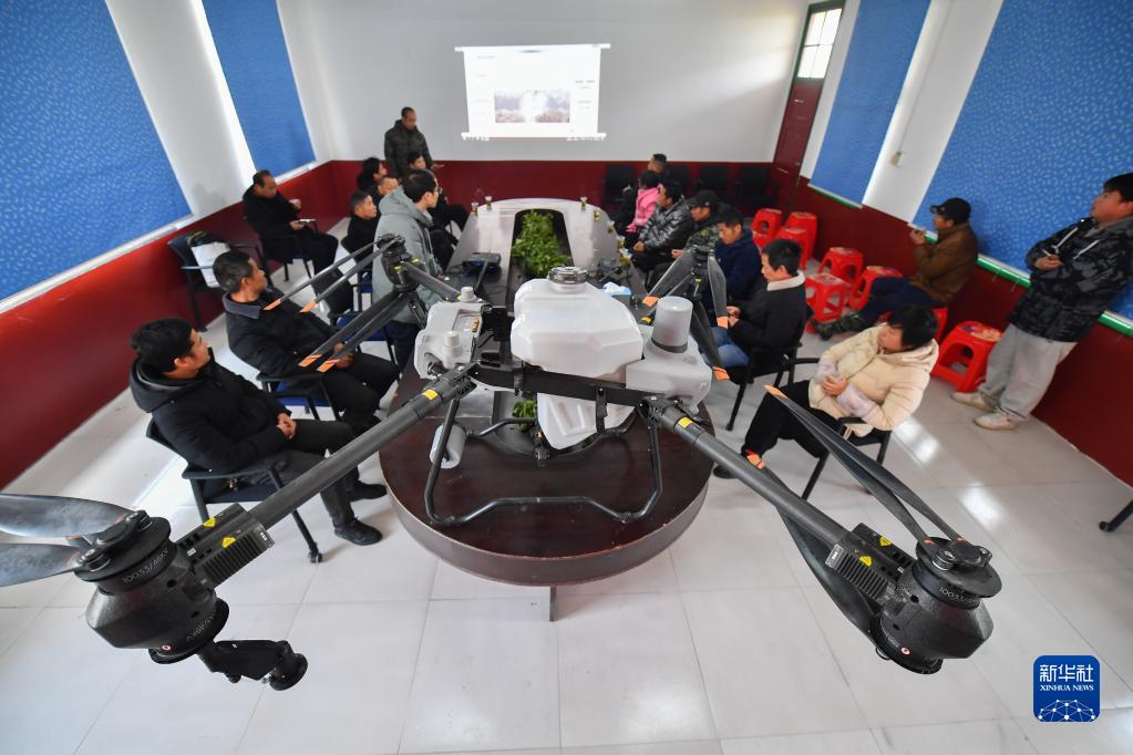 2月15日,在沅江市共華鎮福安村,學員們在農業植保無人機操作員培訓班上學習理論知識。