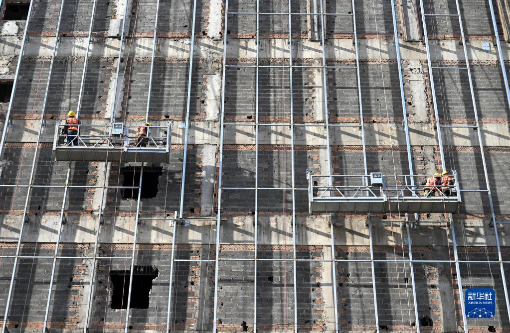 2月14日,工人在位于天津市和平區金街商圈的印象城項目現場施工。