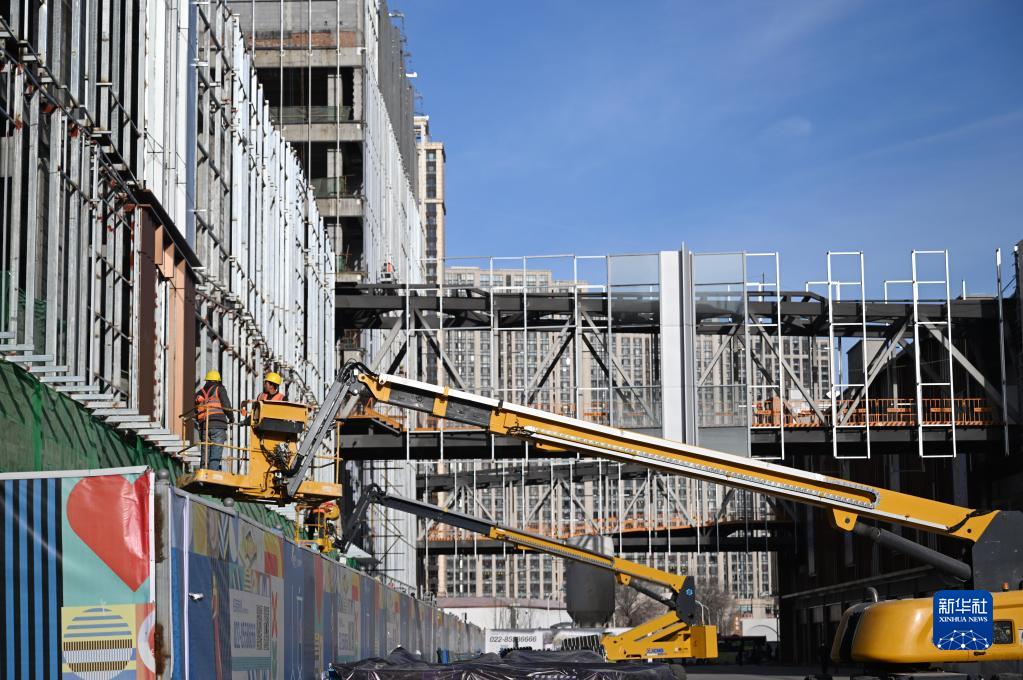 2月14日,工人在位于天津市和平區金街商圈的印象城項目現場施工。