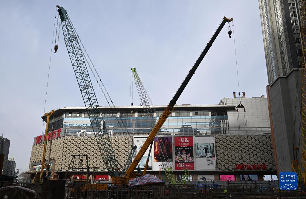 2月14日在天津市和平區濱江道商圈拍攝的施工中的國金購物中心項目。