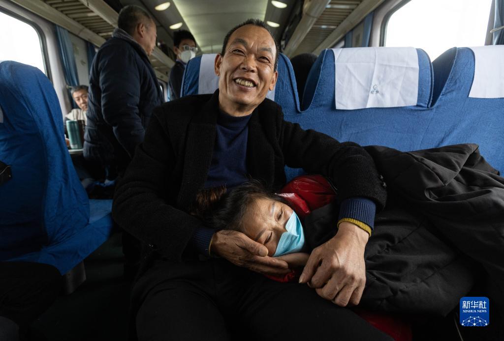 2月14日,來自四川省眉山市彭山區的舒紀林夫婦在臨客K4618次列車上。