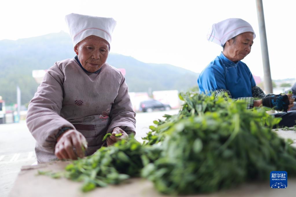 2月15日,在龍里縣灣灘河鎮,菜農在對豌豆尖進行分揀。