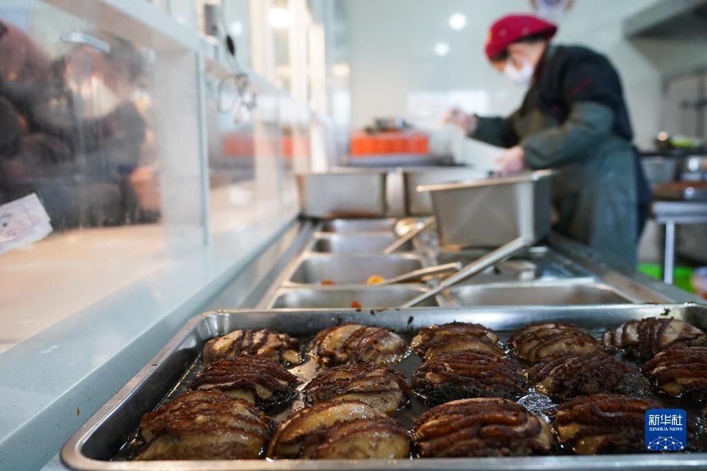 2月15日,鄰里紅餐廳服務員在廚房忙碌。