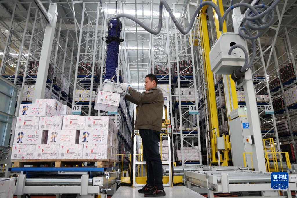 2月15日,在河北省邯鄲市永年區一緊固件生產企業,工人在智能倉儲車間操控設備裝卸貨物。