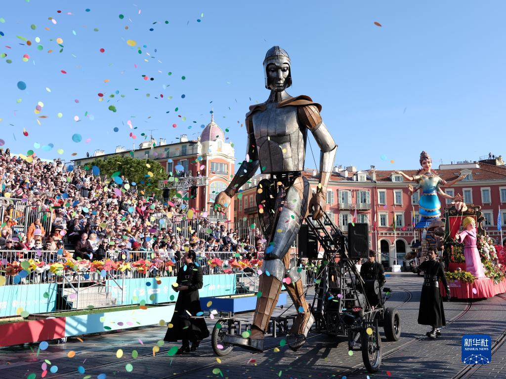 第138屆法國尼斯狂歡節2月10日至26日舉行。在狂歡節15日舉辦的“鮮花大戰”活動中,表演者站在鮮花裝飾的彩車上將鮮花拋向觀眾。