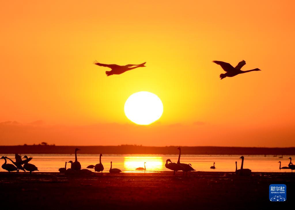 這是2月16日早晨在山東榮成天鵝湖拍攝的大天鵝。