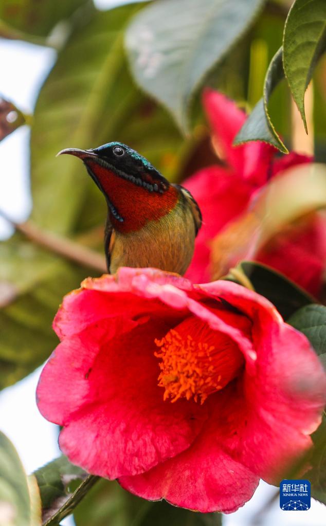 2月15日,在貴州省玉屏侗族自治縣朱家場鎮茅坡村拍攝的叉尾太陽鳥。