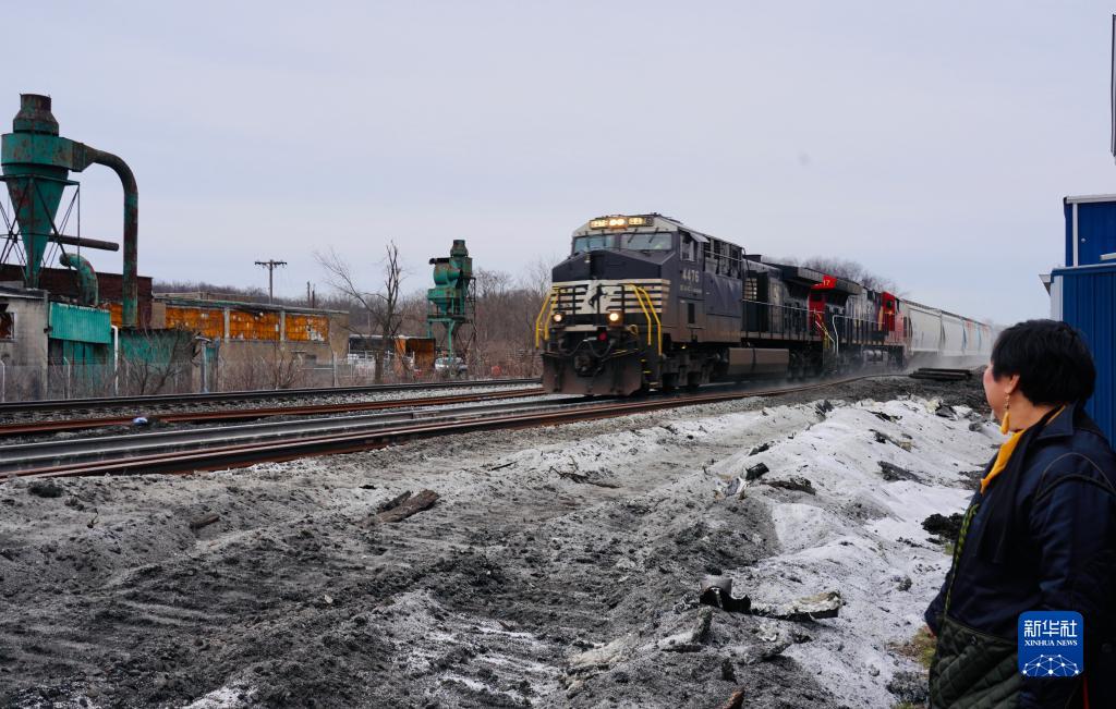 2月14日,諾??四戏借F路公司貨運列車駛過美國俄亥俄州東巴勒斯坦鎮。