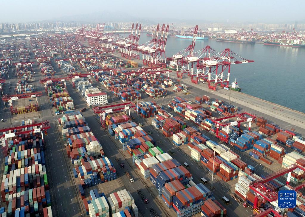 這是山東港口青島港(2月16日攝,無人機照片)。