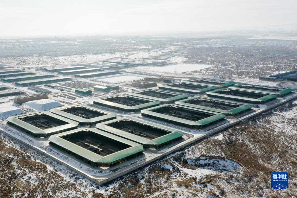 這是2月15日拍攝的古浪縣西靖鎮肉牛養殖基地(無人機照片)。