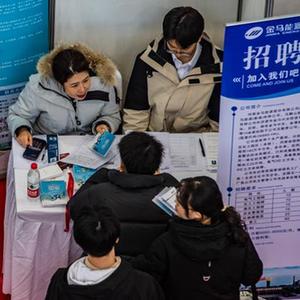 2月16日,學生在西安建筑科技大學2023屆畢業生春季就業洽談會上尋找合適的崗位。
