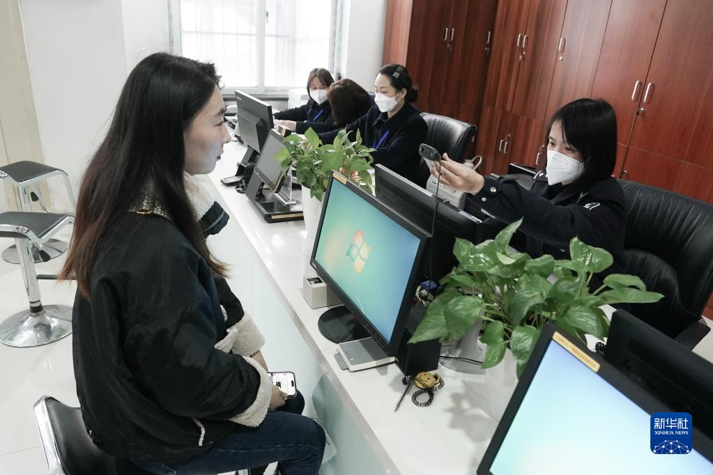 2月16日,南通市公安局崇川分局民警幫助市民辦理護照業務。