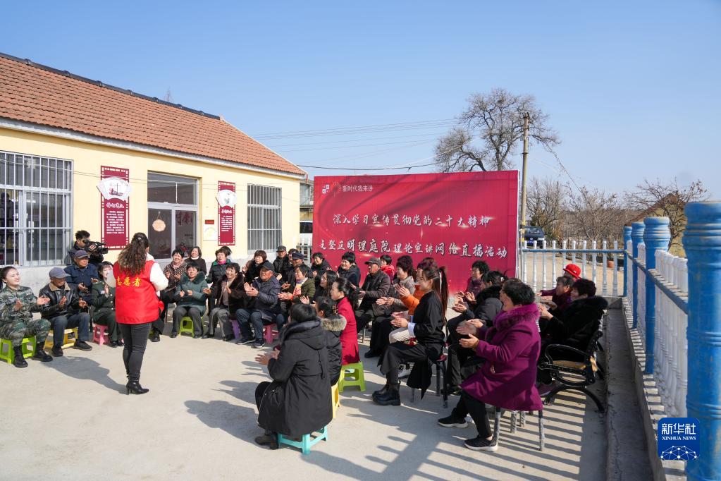 2月16日,大店村村民在村中心大院內參加理論宣講活動。