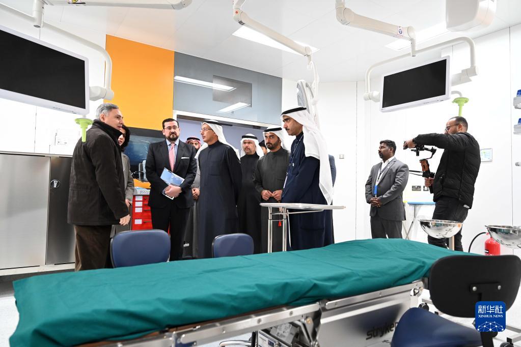 2月15日,在科威特杰赫拉省,來賓在科威特醫保醫院項目杰赫拉省分院內參觀。