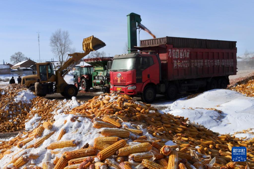 2月15日,在黑龍江省牡丹江市林口縣刁翎鎮三家子村,農民利用設備將玉米脫粒,為春耕做準備。